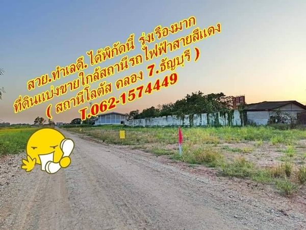 ทำเลรุ่งเรืองที่ดินทำเลรุ่ง ใกล้รถไฟฟ้าสายสีแดงคลอง 7.ธัญบุรี. T.062-1574449