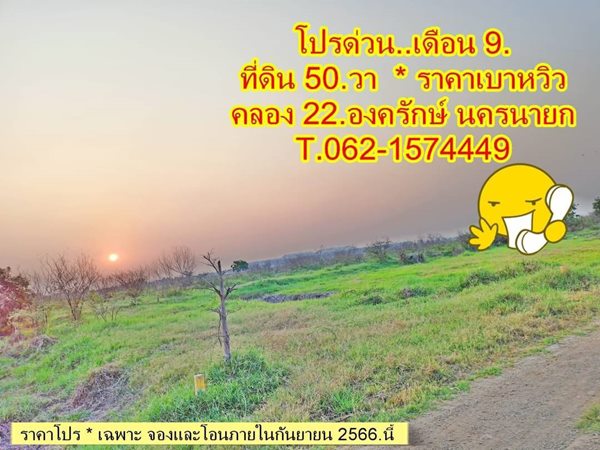 โปรด่วน! เดือน.9 ที่ดิน 50.ตร.ว ราคาเบาหวิวที่คลอง 22.องครักษ์ นครนายก T.062-1574449