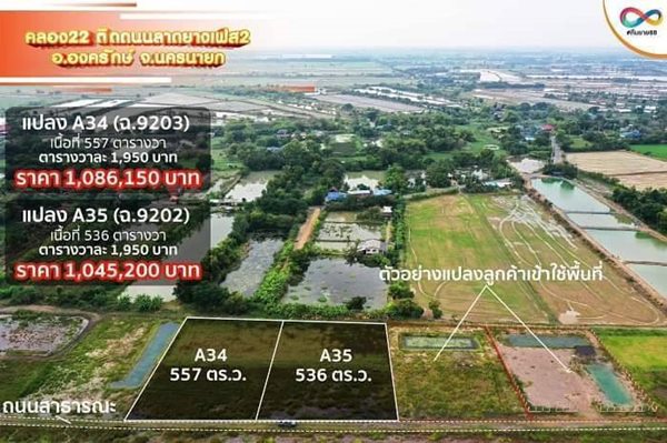 สวยและถูกที่ดินแนวสวนเกษตรชายทุ่งคลอง 22.สด,ผ่อน สบายใจ T.062-1574449