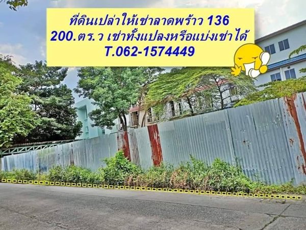 ที่ดินเปล่าถมแล้ว ให้เช่า ลาดพร้าว 136. ขนาด 200.ตรว. T.062-1574449