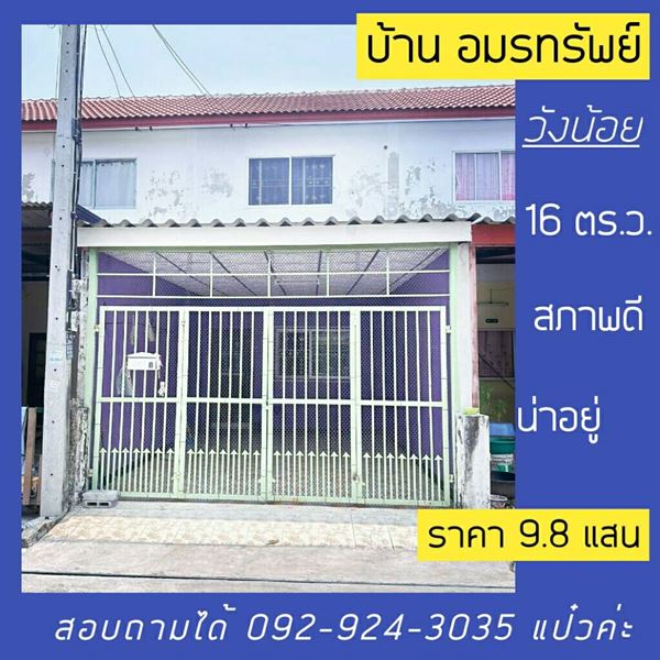 ขายทาวน์เฮ้าส์ 2 ชั้น หมู่บ้านอมรทรัพย์ ต.ลำไทร อ.วังน้อย อยุธยา โทร 092-924-3035