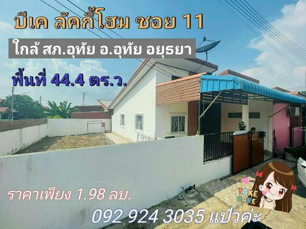ขายทาวน์เฮ้าส์ชั้นเดียว บีเค ลัคกี้โฮม1 อ.อุทัย อยุธยา โทร 092-924-3035