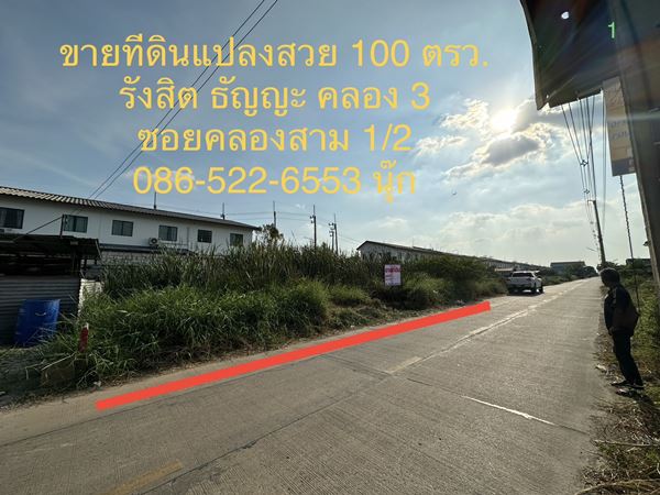 ขายที่ดินแปลงสวย 100 ตรว. ราคาไม่แพง ซอยคลองสาม 1/2 รังสิต คลอง 3 ธัญญะ ปทุมธานี