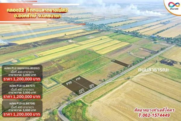 โคตรถูกที่ดินแนวสวนเกษตรชายทุ่ง คลอง 22. T.062-1574449