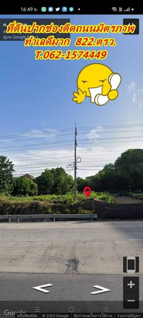 ขายที่ดินติดถนนมิตรภาพทำเลดีโคตรทำการค้าได้ T.062-1574449