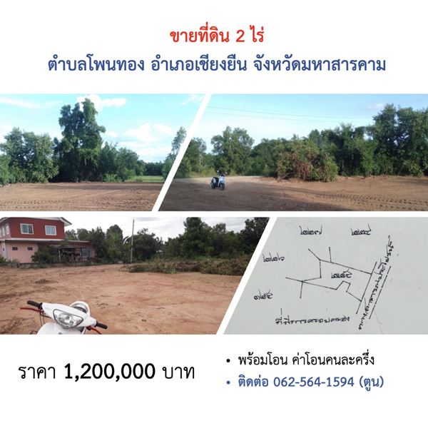 ขายที่ดิน 2ไร่ ติดถนน ต.โพนทอง อ.เชียงยืน จ.มหาสารคาม เดินทางสะดวก มีไฟฟ้า น้ำประปา