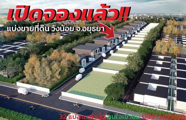 ที่ดินวังน้อย อยุธยา แบ่งขายเริ่มต้น 206 ตรว -ฟรีรั้ว -ฟรีค่าธรรมเนียมในการโอน